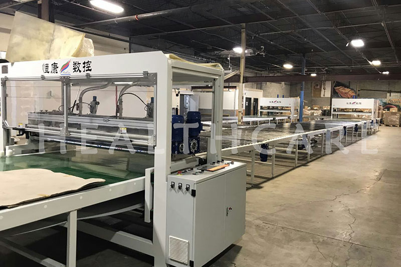 - Интеграция в линию производства матрасов с добавлением пресса, обрезного станка, конвейерных систем и штабелирующего устройства
